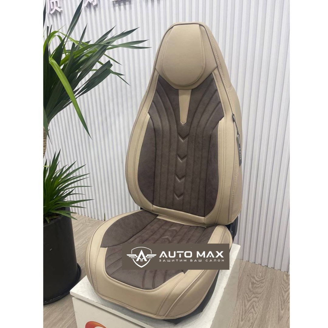 При изготовлении используется комбинация алькантары и экокожи. Алькантара придает поверхности мягкость и приятные тактильные ощущения, а экокожа повышает прочность покрытия и делает его устойчивым к износу. Такое сочетание материалов позволяет сохранить комфорт во время поездок и продлить срок службы обивки сидений.